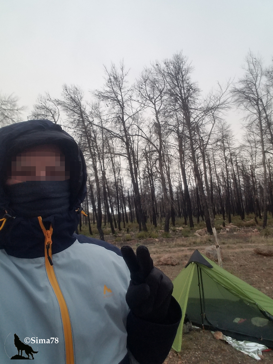 C’est vraiment dommage de constater que toutes les forêts de pins traversées par la variante ont été ravagées par un incendie. Derrière ma tente, on peut voir toute une pinède calcinée, et même l’arbre le plus proche a perdu son écorce. Si cela vous intéresse, je vous invite à lire mon article sur les comportements à adopter en randonnée en huit points.