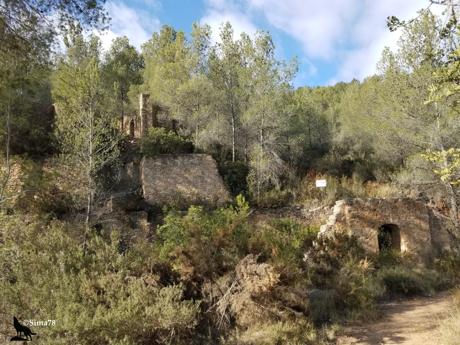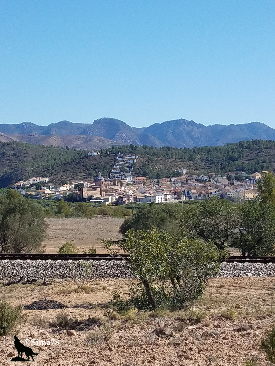 Au début de cette étape, on continue d’être enveloppé par le parfum des fleurs d’orangers, avant qu’il ne soit progressivement remplacé par le délicat parfum des pins. Les paysages se métamorphosent également : des forêts de pins, des vergers d’amandiers, des oliveraies… Ça grimpe légèrement en altitude, ce qui explique qu’il n’y a plus d’oranger. La montée reste très douce, à peine perceptible. Le chemin suit principalement la « Via Verde de Ojos Negros » (la Voie Verte de Ojos Negros), une ancienne voie ferrée qui desservait le deuxième site sidérurgique d’Espagne au Puerto de Sagunto. Ce site a été fermé, je crois, en 1971, et récemment, cette voie a été aménagée pour devenir un chemin, ravissant particulièrement les cyclistes, surtout s’ils parcourent l’itinéraire de Teruel à Sagunto (principalement en descente, avec le vent dans le dos).