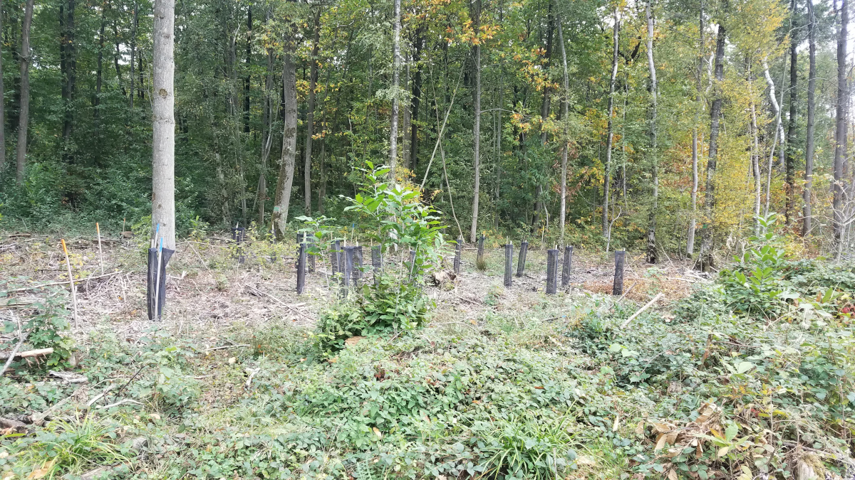 Il y a une vingtaine d’années, je ne sais pour quelle raison l’ONF avait fait des brèches pour faire évacuer l’eau retenue. Plus de tritons, de grenouilles, de dytiques, libellules, etc. Je souhaitais y passer voir comment cela avait évolué. On ne peut plus imaginer qu’avant il avait une mare, c’est devenu un bosquet au milieu de la forêt et même pas marécageux.